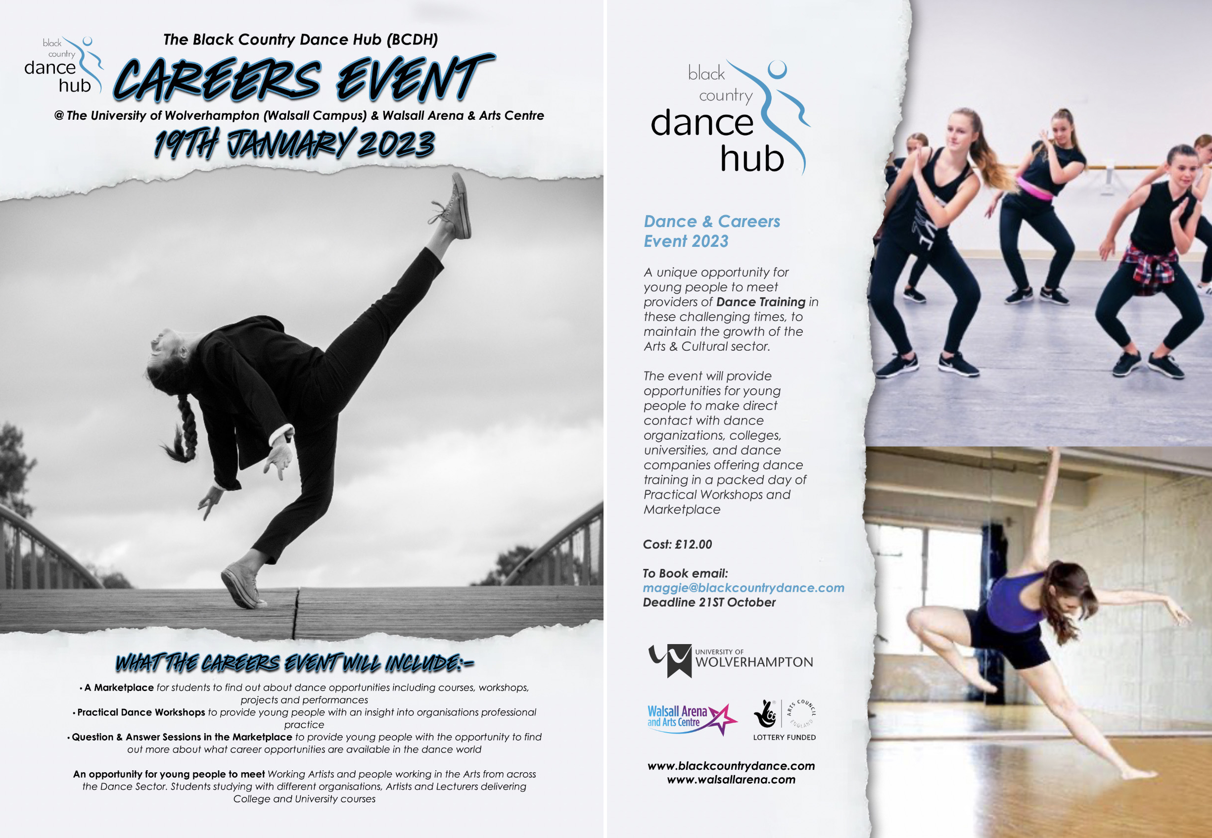 Black Country Dance Hub in partnership with the University of Wolverhampton at The Performance Hub Walsall, annually attracts over 200 young people. Participants experience a busy day of dance workshops, discussions and tours to the Marketplace, which features universities, colleges and dance organisations.